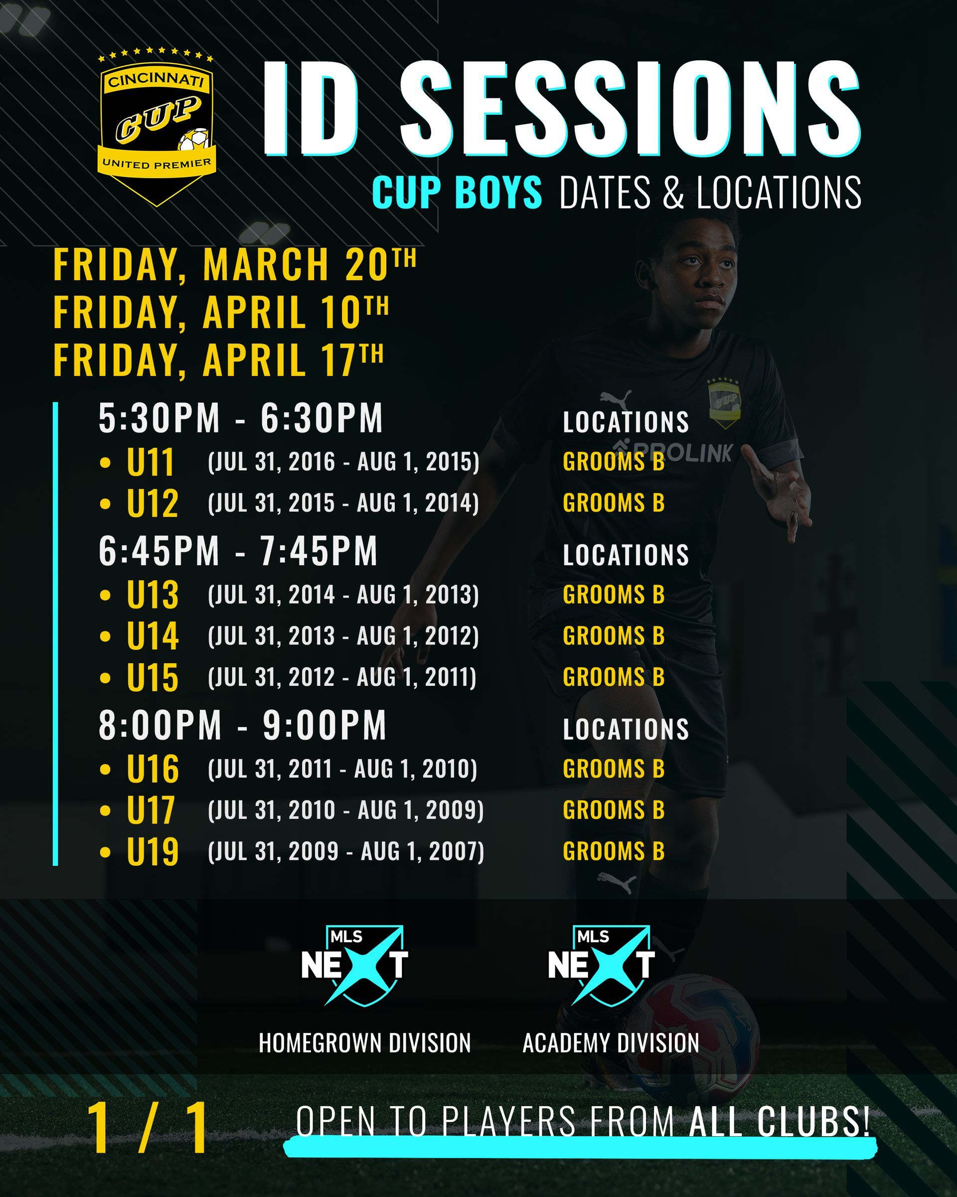 - The only club in Cincinnati with a complete youth developmental pathway. We serve the youngest of players in their local communities through the highest levels of national competition at U13+ in MLS Next, the National Academy League and The Girls Academy League