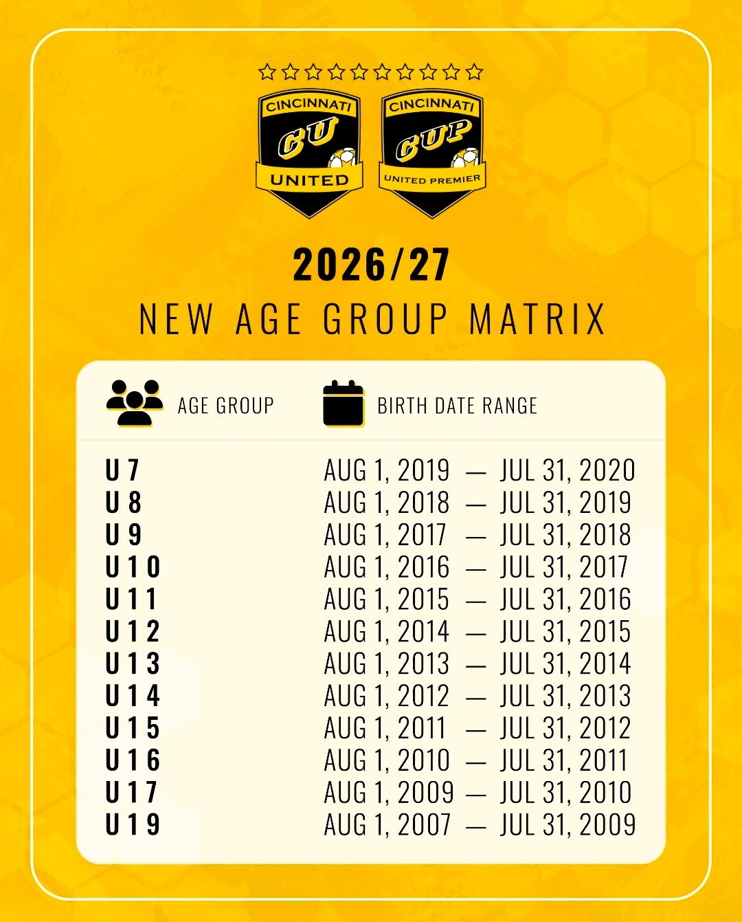 This means that teams for the 2026-2027 season will be formed based upon the age matrix displayed below. You can also view it HERE.